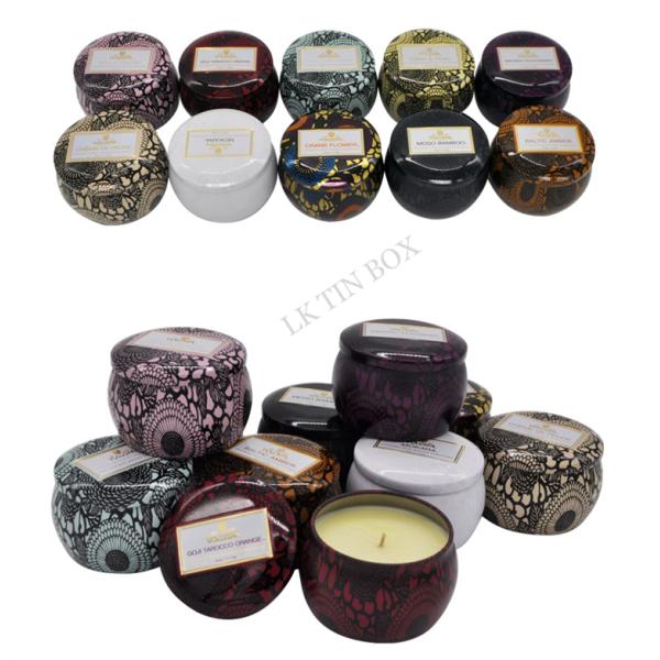 598g Printed Small Round Containers With Lids / Little Metal Boxes For Candle Images |